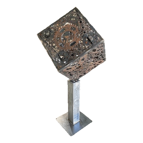 3D Cube Sculpture with Cog Inserts - Raw Finish
