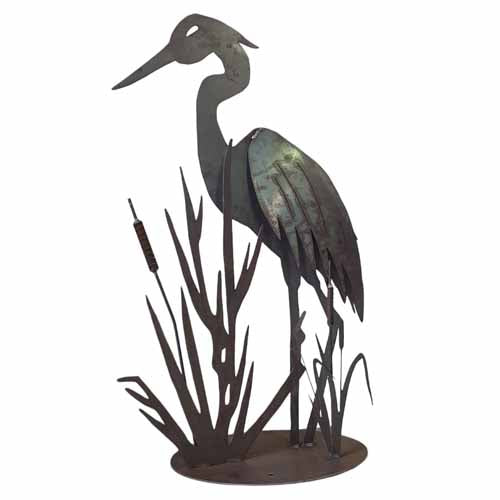 Heron and Reeds Sculpture - Metal Art - Raw Finish