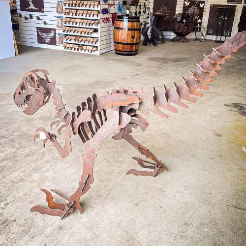 Velociraptor Dinosaur Sculpture Small - Metal Raw Finish