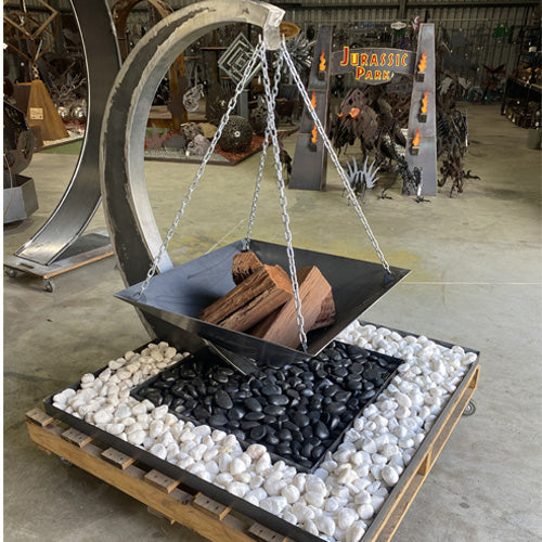 H Beam Swinging Fire Pit - Raw Steel - Firepit
