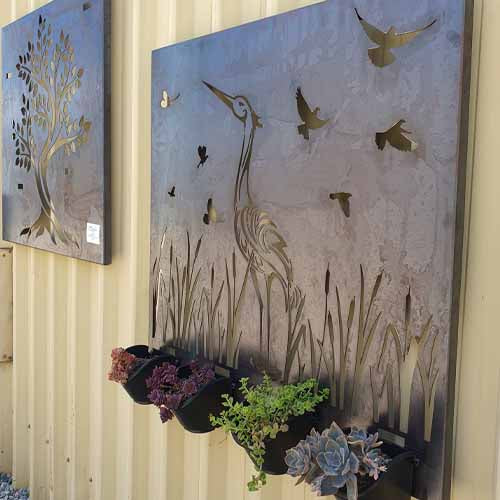 Living Wall - Heron Design - Metal Garden Art Feature - Includes 4 Pots & Mounting Rail
