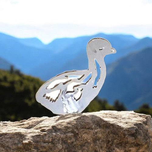 Rustic Emu Chick Sitting Garden Stake - Raw Finish Metal Art
