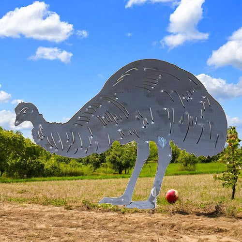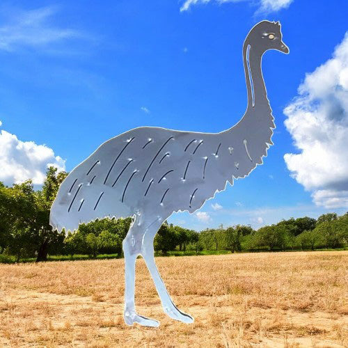 Rustic Standing Emu Garden Stake - Raw Finish Metal Art