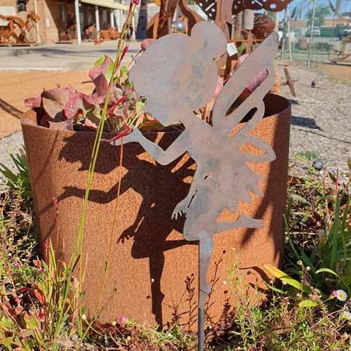 Pot Buddies - Fairy Kneeling Small on Stick - Metal Art