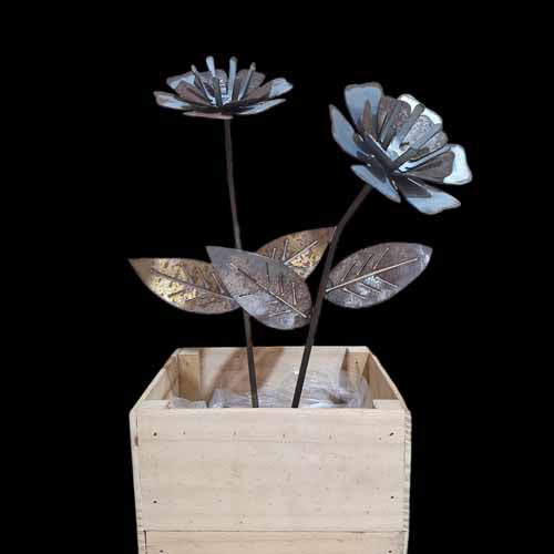 Flower - Daisy on Stake - Metal Art - Raw Finish