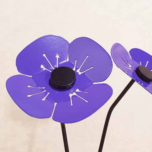 Flower - Purple Poppy on Stake - Metal Art - Small 100mm Wide