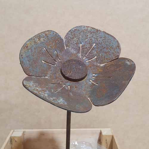 Flower - Poppy on Stake - Metal Art - Raw Finish - Small 100mm Wide